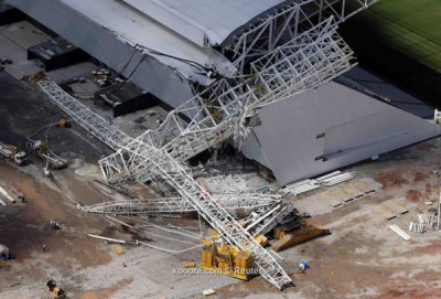 وكانت رافعة قد سقطت في موقع البناء الأربعاء الماضي ودمرت أجزاء من ستاد ارينا كورينثيانز حيث من المنتظر ان يتم لعب المباراة الافتتاحية في كأس العالم 2014 .