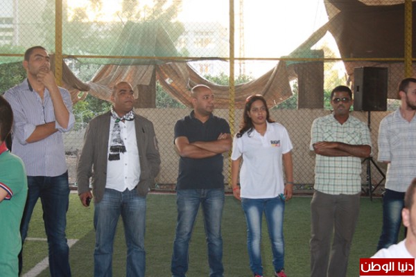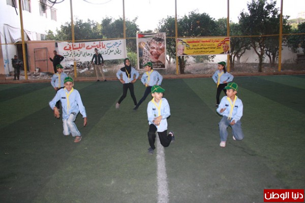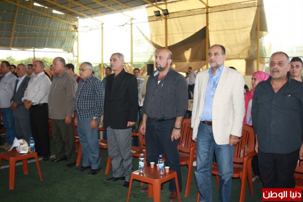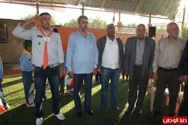 ملاعب مدرسة الامجاد البرج الشمالى تقدم الحضور ممثل عن قيادة الجيش اللبنانى العقيد فوزى شديد والعقيد مدحت حميد وممثل السفارة الفلسطينية محمد بقاعى ومفتى صور ومنطقتها الشيخ مضرار حبال ومدير منطقة صور للانروا المهندس فوزى كساب و رئيس جمعية هلا صور المهندس معين حلوانى وممثل