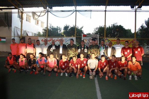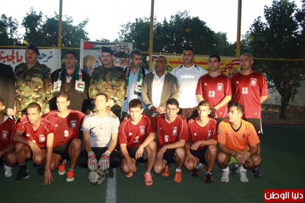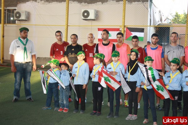 المخيمات الفلسطينة الكوفية الفلسطينية والورود للاعبى منتخب الجيش اللبنانى ثم تقدم العقيد مدحت حميد والعقيد فوزى شديد والحاج محمد رشيد ابو رشيد بتحريك كرة البداية للمباراة وانتهى الشوط الاول بتقدم ابناء المخيمات بنتيجة 2—0 وما بين