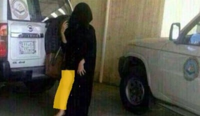 صورة.. فتاة تعري ساقها أمام سيارة هيئة الأمر بالمعروف بالسعودية ونشطاء ينددون بالواقعة!