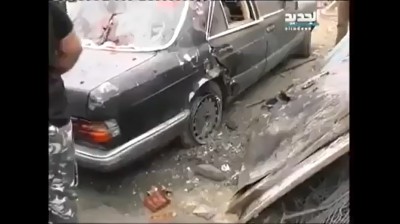 لحظة انفجار العبوة الناسفة اثناء تشييع الشهيد محمد السعدي قرب جدار المقبرة في مخيم عين الحلوة