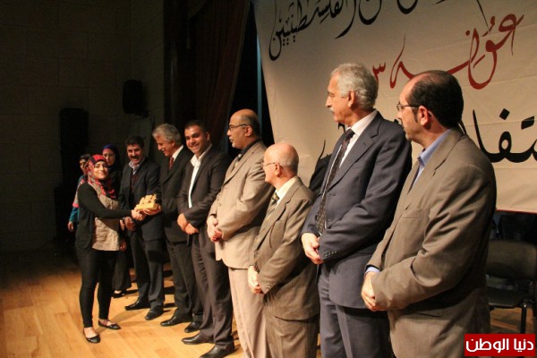 كرمت اللجنة الوطنية لتكريم المتطوعين الفلسطينيين"عونة"، خلال المهرجان الوطني لتكريم المتطوعين الفلسطينيين"عونه"2013، الذي عقد امس في مسرح جامعة خضوري بمدينة طولكرم، تحت شعار(لنحتفل بفلسطين ولنبادر بالتطوع لخدمتها، فكل زيتونة فيها تستحق متطوعا