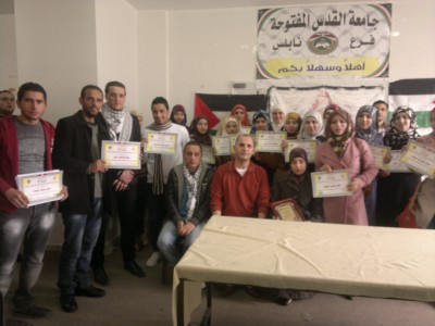 أقام مجلس اتحاد الطلبة ونادي كلية التربية في جامعة القدس المفتوحة بنابلس حفل لتخريج دورة محادثة في اللغة الانجليزية