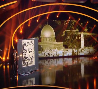 قدّم محمد الديري الفنان الفلسطيني المشارك في برنامج مواهب العرب Arabs Got Talent برسم صورة الشهيد عرفات باستخدام الاكسجين والنار ما أثارت اعجاب المشاهدين.