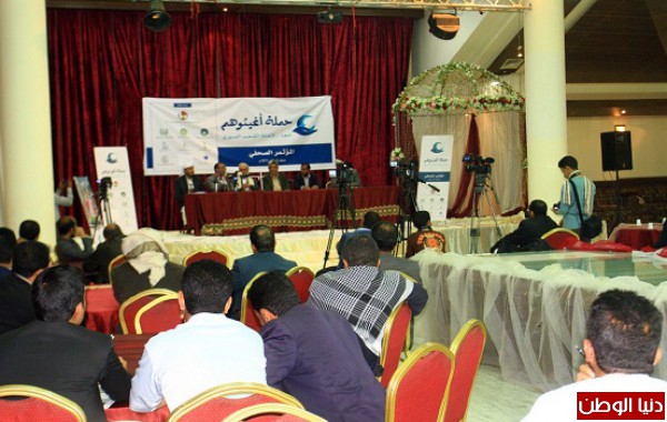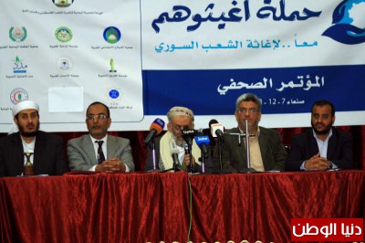 تدشين الحملة الثالثة لإغاثة اللاجئين والنازحين السوريين تحت عنوان " أغيثوهم " خلال مؤتمر صحفي بصنعاء