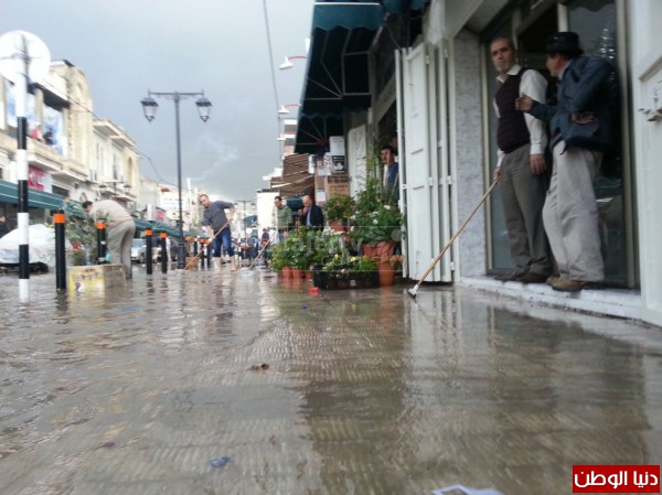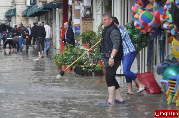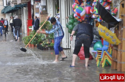 وتعرضت منطقة شارع نابلس ، شارع فرعون ، شارع وسط المدينة ومنطقة دوار السلام للغمر نتيجة زخات المطر التي هطلت ظهر هذا اليوم الأحد.