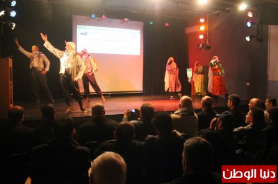 وفي نهاية الاحتفال قدم مركز يافا الثقافي درعا للكاتب على ابداعه الطليعي فيما شارك قيادات العمل الوطني والاسلامي في تكريم المؤلف في لوحة وحدوية رائعة. وتخلل الحفل لوحات فنية قدمتها فرقة عائدون التابعة للمركز بقيادة الفنان عميد جاموس.