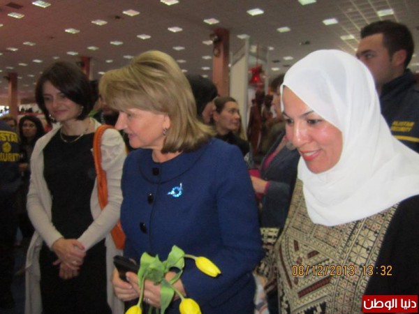 وكعادته جال سفير فلسطين أحمد عقل وعقيلته بين الحضور وتفقدوا أجنحة فلسطين وتبادلوا حوارات الحديث مع الزائرين , وكانوا في استقبال السيده باسيسكو عقيلة الرئيس الروماني والتي زارت جناح دولة فلسطين واستمعت لشرح من السيده عقيلة السفير الفلسطيني والتي أشرفت بنفسها على خروج مشاركة فلسطين بهذا الشكل الرائع واللافت , وابدت السيده باسيسكو اعجابها بفلسطين وجناحها وتذوقت بعض الماكولات الشعبية الفلسطينة , متمنية النجاح والتوفيق لاتحاد المراة الفلسطينية الذي أثبت جدارته في انتزاع اعجاب الحضور لما قام به من جهد كبير في هذا البازار السنوي المهم .