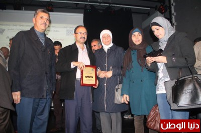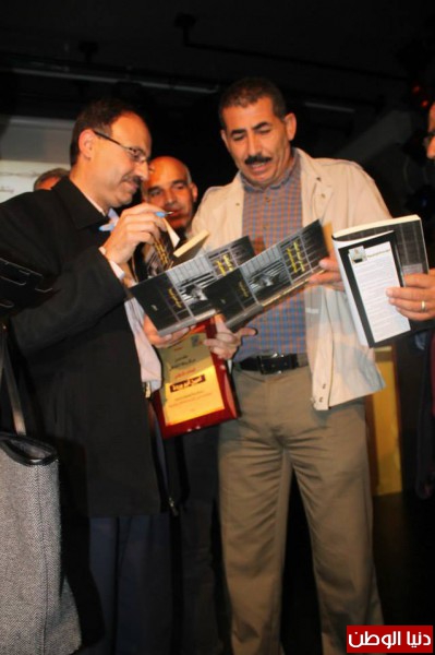 وفي نهاية الاحتفال قدم مركز يافا الثقافي درعا للكاتب على إبداعه الطليعي فيما شارك قيادات العمل الوطني والإسلامي في تكريم المؤلف في لوحة وحدوية رائعة. وتخلل الحفل لوحات فنية قدمتها فرقة عائدون التابعة للمركز بقيادة الفنان عميد جاموس.