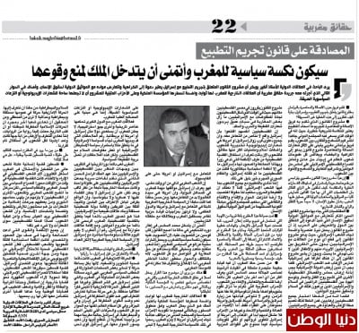 • كيف تعلقون على الرأي القائل بأن المقتضيات التي أتى بها هذا القانون تتعارض كليا مع المواثيق والمعاهدات الدولية التي صادق عليها المغرب بشأن حقوق الإنسان، لا سيما حرية التنقل والرأي والتبادل التجاري؟ المقتضيات التي جاء بها مشروع القانون السئ الذكر تتعارض مع المواثيق الدولية لحقوق الانسان التي تنبذ الدعوة الى الشقاق بين الدول والتحريض على الحرب اذ ان مشروع القانون يحمل نبرة عنصرية واضحة اتجاه الشعب الاسرائيلي حيث يدعو مشروع القانون الى قطع اي نوع من العلاقات مع الاسرائيليين بدون حتى التفريق بين الاسرائيليين الابرياء منهم والاطفال الذين لا ذنب لهم في ما يحدث وبدون ان يشير مشروع القانون الى ان هناك اطراف غير اسرائيلية تمارس الارهاب ضد الشعب الاسرائيلي فكما يجب ان ندين ارهاب الدولة الاسرائلية يجب ادانة ارهاب حماس والفصائل الفلسطينية الاخرى التي تشيع روح القتل والدمار وتوسع الهوة بين الفلسطينيين الراغبين في السلام والاسرائليون الذين يرغبون كذلك في السلام وتحقيق مشروع الدولتين ، فكما انه من الخطأ اعتبار جميع الفلسطينيين ارهابيين فمن الخطأ كذلك تعميم صفة الارهاب والعداوة على جميع الاسرائيليين ، مشروع القانون الذي تقدم به فريق الاصالة والمعاصرة اختزالي ولا واقعي ولا يستجيب للتطورات الدولية التي يعرفها ملف العلاقات الفلسطسنية الاسرائيلية ، كما ان واضعي مشروع القانون يقررون في مصير الفلسطينيين مكانهم حيث في الوقت الذي شكل الفلسطينبون لجن للمفاوضات مع الاسرائليين ما زال بعض المغاربة في سبات عميق يرددون شعارات القطيعة والحرب والحقد ،ان الفلسطنيين انفسهم اقتنعوا بأن اسرائيل واقع لا مناص من التعامل معه وان جميع دعاوى قرب زوال اسرائيل او امريكا هي شعارات ايديولوجية تخديرية للشعوب واضغاث احلام ومتمنيات اكثر منها حقائق ، فالشعوب الان باتت تعرف ان استغلال القضية الفلسطينية من طرف الانظمة التي تدعي زورا وبهتانا الممانعة والصمود اتجاه اسرائيل ما هي الا انظمة استبدادية ديكتاتورية قتلت من الفلسطيننين ما لم تقتله اسرائيل والنظام السوري المجرم خير دليل على ذلك ، اننا ننادي بالتطبيع مع جميع الشعوب بما فيها الشعب الاسرائيلي لاننا لا نعتقد ان القطيعة والحروب ستعيد لنا حقوقا اغتصبت ولا ارضا انتزعت ، الحوار والاقناع والاقتناع والثقة هي التي ستعيد للمجتمع الدولي مبادئه الكونية المستلهمة من المواثيق الدولية لحقوق الانسان. • تمت صياغة هذا المقترح بلغة قريبة من اللهجة التي تستعمل في تدبيج بيانات إعلان الحرب، كما تضمنت نعوتا لاسرائيل بالإرهاب واتهامات خطيرة للولايات المتحدة الأمريكية، ومادام هذا المقترح تم تبنيه من قبل أحزاب العدالة والتنمية والاستقلال والاتحاد الاشتراكي إضافة إلى الأصالة والمعاصرة فالواضح أنه سيجد طريقه نحو المصادقة، كيف تستشرفون مستقبل العلاقة بين المغرب وأمريكا وإسرائيل لو تم المصادقة على هذا المقترح من طرف مؤسسة رسمية ودستورية بالمغرب؟ من حسن حظ المغرب ان فيه قيادة حكيمة متبصرة متمثلة في القيادة الرشيدة لصاحب الجلالة محمد السادس الذي يعرف اكثر من اي احد آخر بان المغرب كان دائما ارضا للتسامح والتعايش والاخاء بين الشعوب ، الاحزاب المغربية التي ذكرتم ما تزال تقوم بتنويم قواعدها بشعارات قومية فارغة عفا عنها الزمن وهي لا تتوانى قيادتها في زيارة اسرائيل والدراسة في امريكا ، فاسرائيل وامريكا ممنوعتان على الفقراء فقط اما الاغنياء من العدالة والتنمية والاتحاد وغيرها من الاحزاب فلا مشكل لديهم ابدا عند الذهاب الى امريكا او اسرائيل لتطوير ثرواتهم او تلقي تكوينات سياسية فيما ممنوع على القواعد الحزبية التعامل مع اسرائيل او امريكا حتى على الفايسبوك ، ان الشعب المغربي اذكى من اي وقت مضى فهو يعرف ان اسرائيل مواقفها مهمة للمغرب في المحافل الدولية وان امريكا هي سيدة العالم ولا بد من التعامل معها ومن حسن حظنا كما قلت سابقا ان السياسة الخارجية الم
