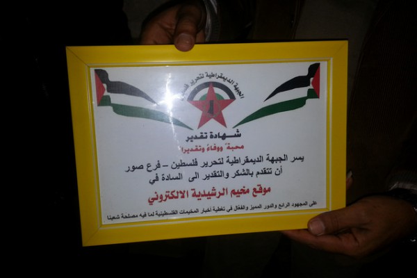 وبدورة تحدث الرفيق ابو عماد الاسمر حول اهمية الاعلام في الصراع الدائر مع العدو الصهيوني . كما وجه التحية لموقع مخيم الرشيدية الذي سطر بالكلمة المعبرة و الصورة الصادقة عن هموم شعبنا الاجئ في لبنان كما نتمنى لموقعكم التقدم و الازدهار .