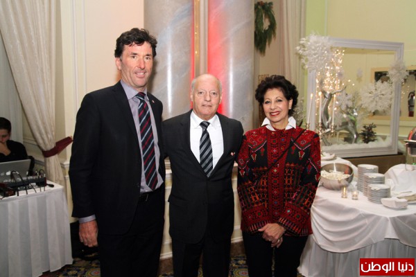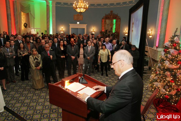 كما تقدم السفير الفلسطيني بالشكر للحكومة الكندية والشعب الكندي على إستمرارهم في تقديم الدعم للشعب الفلسطيني والحرص على علاقة الصداقة ما بين الشعبين ، كما أنه أشار إلى تطور العلاقات الفلسطينية الكندية فيما يصب في مصلحة البلدين وحرص على الإشارة إلى أهمية تبادل الزيارات المتبادلة التي قام بها مسؤولي البلدين مؤخراً حيث قام وزير الشؤون الخارجية د. رياض المالكي بزيارة ناجحة إلى كندا والذي حرص على مقابلته وزير الزراعة السيد جيري ريتز ومحافظ البنك المركزي السيد مارك كارني وعدد من البرلمانيين الكندين ، وأيضاً قام عضو اللجنة المركزية د. محمد شتية ومستشار السيد الرئيس د. صبري صيدم بزيارة إلى كندا مؤخراً في سياق الحرص على تطوير العلاقات بين البلدين الصديقين ، بالمقابل قام عدد من المسؤولين الكنديين ومنهم وزير الشؤون الخارجية الكندي السيد جون بيرد . كما شدد في كلمته أيضاً على أن الشعب الفلسطيني يتطلع بإيجابية كبيرة الأن إلى الزيارة المرتقبة مع بداية العام الجديد للسيد ستيفن هاربر رئيس الوزراء الكندي ، ويأمل بأن تساعد هذه الزيارة على أن تعمل على بناء وتطوير علاقة قوية ومتينة بين البلد.