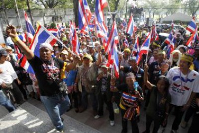 وكانت رئيسة الوزراء ينجلوك شيناواترا قد دعت يوم الاثنين لانتخابات مبكرة حين حاصر 160 ألف متظاهر مكتبها في مقر الحكومة إلا ان الخطوة لم تنجح في تهدئة الاحتجاجات رغم تراجع اعداد المحتجين.