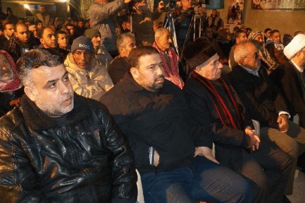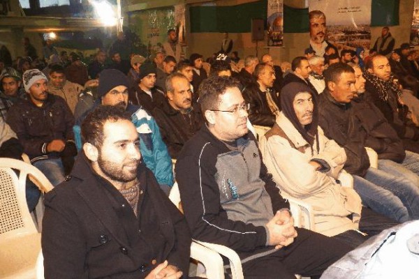 كلمة الأسير المحرر عبد الحكيم حنيني الذي دعا جميع الفصائل الفلسطينية الى التوحد خلف مشروع المقاومة لمواجهة المؤامرات التي يحيكها العدو الصهيوني ضد شعبنا ومقاومته الباسلة، ودعا الى العمل الجاد لاطلاق سراح الاسرى من سجون الاحتلال الذين يعانون أشد المعانات ويواجهون أصعب الظروف في معتقلاتهم، كما ثمن حنيني الفعاليات التضامنية مع الأسرى والمعتقلين في سجون الاحتلال الصهيوني.