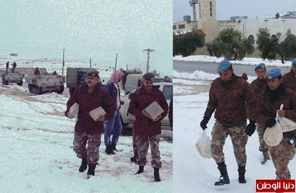 واضافوا ان المنطقة شهدت تراكم للثلوج ولأول مرة تشهدها ادت الى اغلاق الطرق ومحاصرة المواطنين في منازلهم الا ان الجيش الاردني ساهم كثيرا في انقاذ حياة المواطنين بدليل خروجهم للميدان في تقديم المساعدات للمواطنين.