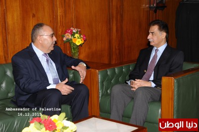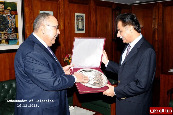 من ناحية أخرى وضع السفير الفلسطيني رئيس البرلمان الباكستاني فى صورة أخر التطورات و الأوضاع السياسية و المفاوضات و التعنت الاسرائيلي و مواصلة هجمته الأستيطانية الشرسة ضد الأرض و المقدسات الفلسطينية الى جانب معاناة الأسري الفلسطينين فى سجون الاحتلال الاسرائيلي و حصار قطاع غزة.