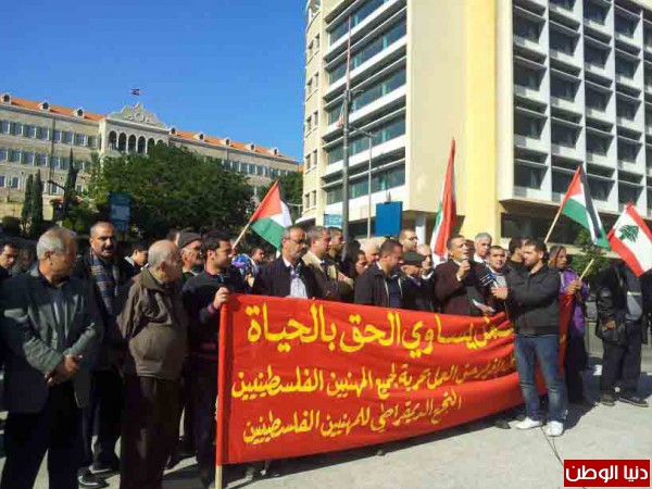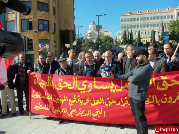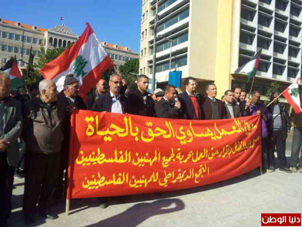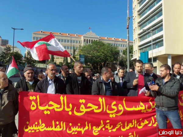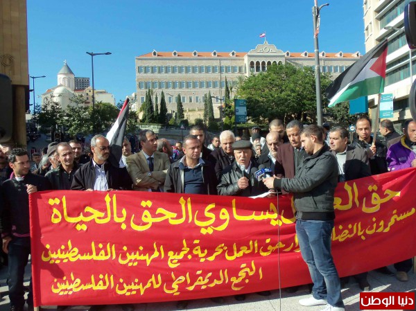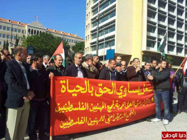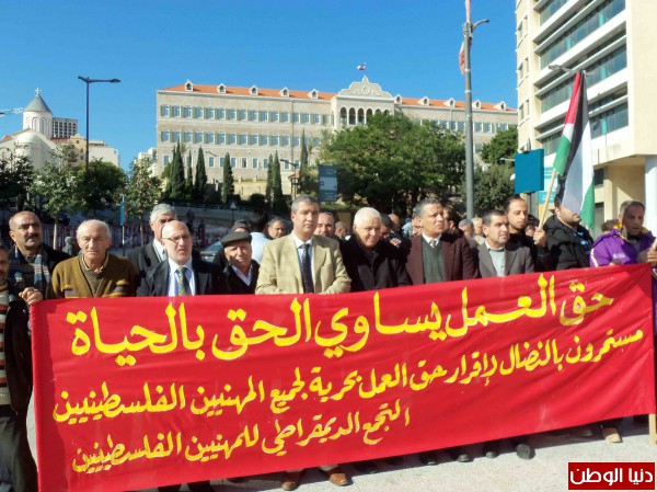 بدعوة من التجمع الديمقراطي للمهنيين الفلسطينيين في لبنان، وتحت شعار "حق العمل يساوي الحق بالحياة"، نفذ اليوم اعتصام مطلبي بحضور حشد من ممثلي النقابات والاتحادات المهنية والاحزاب والفصائل وعدد من المهنيين الفلسطينيين من اطباء، مهندسون، محامون، اعلاميون وحملة شهادات جامعية..).. وذلك امام مقري البرلمان والحكومة اللبنانية وسط بيروت..