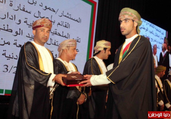 العُماني في شرف المساهمة في بناء وطنهم العزيز ونهضته وازدهاره وتحقيق حلم الاباء والامهات الذين تتعلق أبصارهم بفرحة النجاح والتخرج والعودة لحضن الأسرة والوطن".