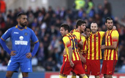 تعملق بدرو رودريغيز في غياب النجمين الارجنتيني ليونيل ميسي والبرازيلي نيمار وعاد ببرشلونة من بعيد بعدما حول تخلفه امام مضيفه خيتافي بهدفين نظيفين الى فوز كبير 5-2 الاحد في المرحلة السابعة عشرة من الدوري الاسباني لكرة القدم.