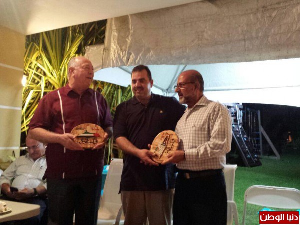 وكرم حمايل اثناء اللقاء رجل الاعمال الفلسطينيين السيد صالح ياسين والسيد صابر السلوادي تقديرا لجهودهم في رعاية الجالية
