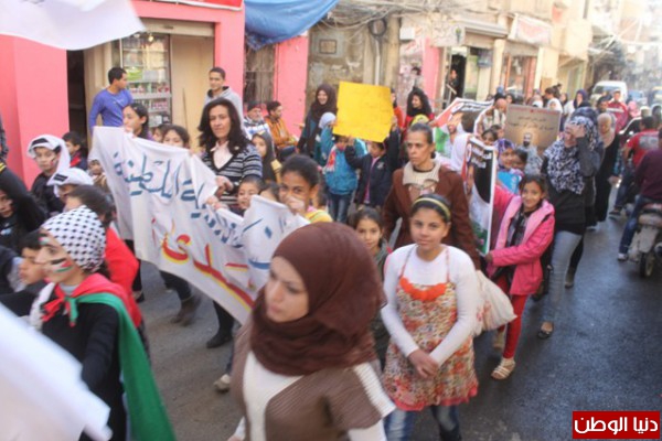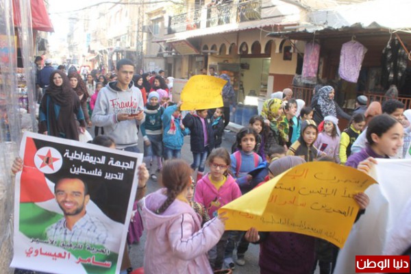 نظمت النسائية الديمقراطية الفلسطينية (ندى) مسيرة عفوية في مخيم عين الحلوة صباح اليوم الاثنين (23-12) لانتصار إرادة الأسير سامر العيساوي على السجان الإسرائيلي.