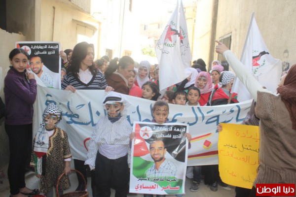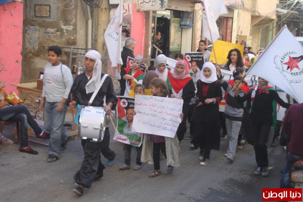نظمت النسائية الديمقراطية الفلسطينية (ندى) مسيرة عفوية في مخيم عين الحلوة صباح اليوم الاثنين (23-12) لانتصار إرادة الأسير سامر العيساوي على السجان الإسرائيلي.