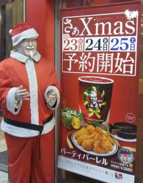 في اليابان، يعتبر دجاج الكنتاكي وجبة العشاء الأشهر ليلة الميلاد حيث يبدأ حجز الوجبات أحياناً قبل شهرين من العيد. (الصورة من أستراليان تايمز)
