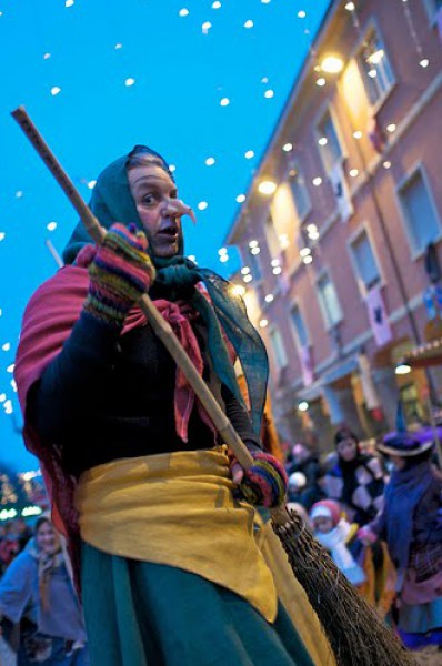 بدلاً من سانتا كلوز، تقدّم الهدايا ساحرة اسمها "لا بيفانا"، حيث تعطي الفاكهة والحلوى للأطفال المطيعين والفحم والثوم لغير المطيعين. ويترك الناس النبيذ لها لتشرب قبل أن تغادر وإن كنتم ودودين معها يمكن أن تكنّس لكم الأرضية بمكنستها. (الصورة من موقع كاريفيرارو)