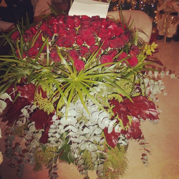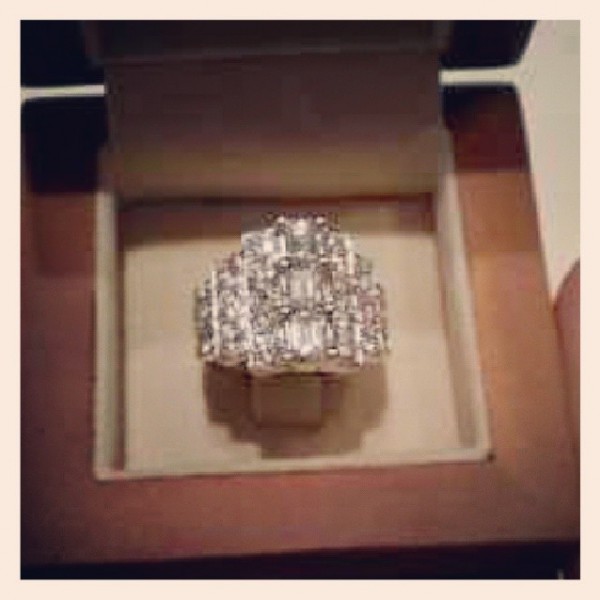 ونشرت صورا لبعض الهدايا التي تلقتها من باقة ورد وحقيبة والهدية الأكبر من زوجها خاتم ألماس علقت عليه :" أكبر خاتم رأيته في حياتي .. شكرا حبي" .