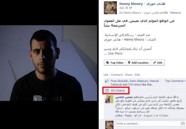 ومن إحدى أهم المشاركات للفيديو كانت من الحركة العالميه " زايتجايست بالعربيه " وهي منظمه عالميه مليونيه تقترح خطه قابله للعمل من أجل التغيير الإجتماعي, خطة تعمل من أجل حضارة عالميه مُسالمه ومُستدامه " The zeitgeist movement " لاقت رسالة الفنان هاني خوري صدى كبير, حيث تناقلت على مواقع التواصل الإجتماعي " التويتر والفيسبوك وجوجل + " وها هي الرسالة لتشاهدوها, السيناريو من كتابة وتقديم هاني خوري, تصوير ومونتاج ميرا عيلبوني.