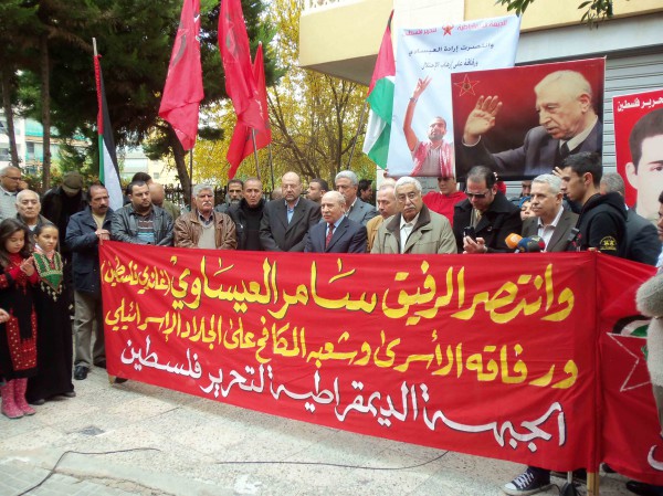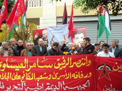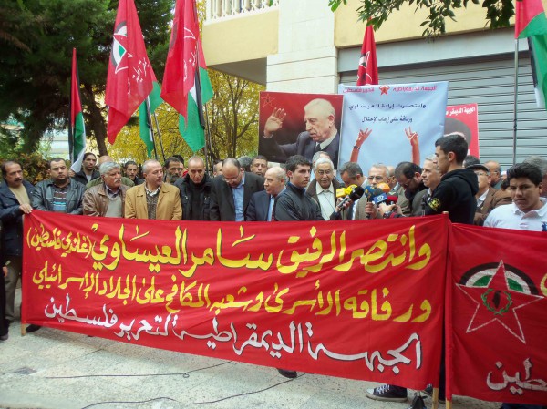 وقال: عندما صمد القائد سامر العيساوي والتف الشعب الفلسطيني حول قضيته وقضية المعتقلين كان الانتصار على الاحتلال، ونحن قادرون اذا ما توفرت الاستراتيجية النضالية الصحيحة ان ننتصر على العدو ونحقق الانتصارات كما تحقق في السابق.. لذلك ندعو الى الانسحاب من المفاوضات واعتماد استراتيجيات نضالية بديلة تكون كفيلة بتغيير الواقع القائم على مختلف المستويات.. خاصة التوجه الى الأمم المتحدة ووضع دول العالم أمام مسؤولياته لجهة معاقبة اسرائيل على خرقها الدائم للقانون الدولي.. واسناد ذلك على المستوى الميداني بتفعيل المقاومة الشعبية بمختلف اشكالها والاسراع باستعادة الوحدة الوطنية وانهاء الانقسام والتحرك العاجل لوقف التهديدات العدوان الاسرائيلي على قطاع غزه.