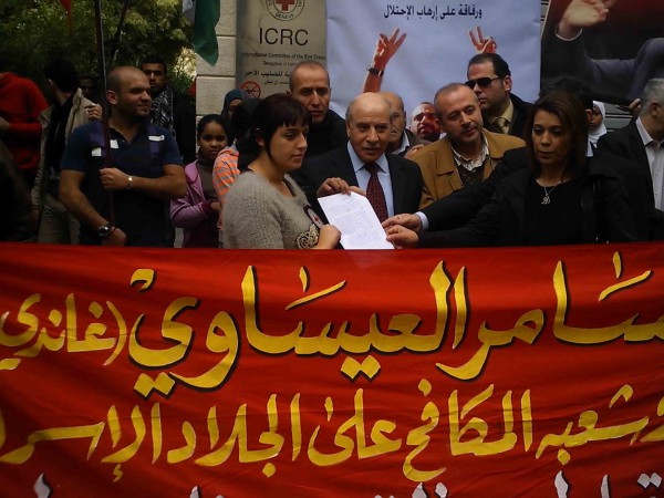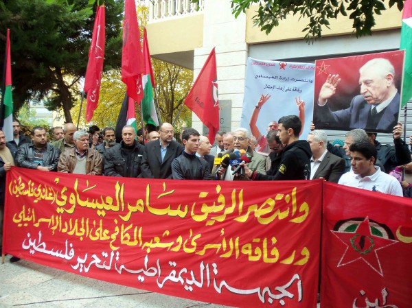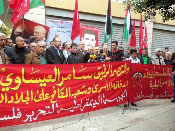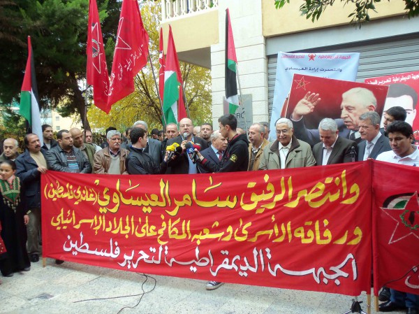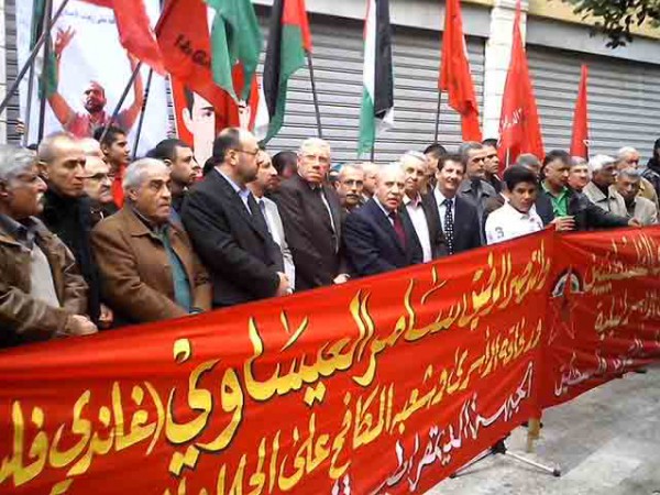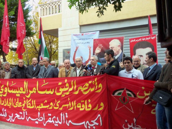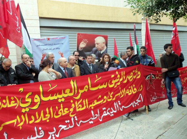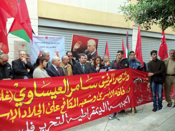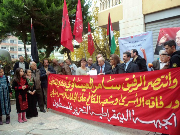 بدعوة من الجبهة الديمقراطية لتحرير فلسطين وإحتفاءا بانتصار عضو لجنتها المركزية الاسير سامر العيساوي نظمت اليوم وقفة تضامنية مع العيساوي ودعما لقضية الاسرى في السجون الاسرائيلية بعنوان: "شهادات وتحية" وذلك امام مقر اللجنة الدولية للصليب الاحمر. شارك في الوقفة عدد من قادة الاحزاب اللبنانية والفصائل الفلسطينية اضافة الى اعضاء اللجان الشعبية وفعاليات مخيمات بيروت.