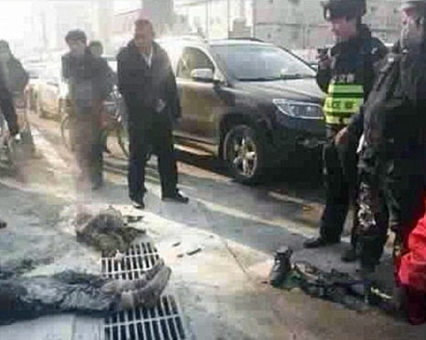 قو هوانج 43 عام كان ينزل راكبا حين رأي ضابط المرور يكتب مذكرة مخالفة لصف سيارته بطريقة غير قانونية في الصين .