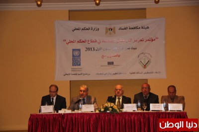 انطلقت صباح اليوم فعاليات مؤتمر تعزيز النزاهة والشفافية في قطاع الحكم المحلي الذي تنظمه هيئة مكافحة الفساد ووزارة الحكم المحلي، بالتعاون مع الاتحاد الفلسطيني لن وهيئات المحلية، وصندوق تطوير وإقراض البلديات، وبرنامج الأمم المتحدة الإنمائي UNDP . والذي يستمر لمدة يومين، بهدف إطلاق الحوار بين الأطراف المعنية في عمل الهيئات المحلية، نحو سبل تعزيز النزاهة والمساءلة والشفافية لمكافحة الفساد على المستوى المحلي، مع الجهود المبذولة على المستوى الرسمي.