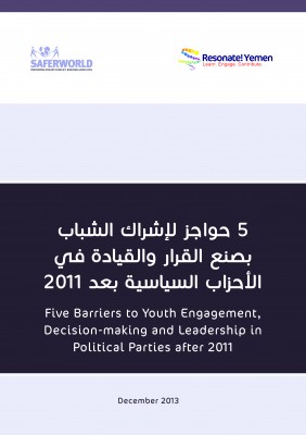 تقيم مؤسسة رنين اليمن بالشراكة مع منظمة سيفر ورلد فعالية إطلاق تقرير بعنوان" خمس حواجز لإشراك الشباب بصنع القرار والقيادة في الأحزاب السياسية ما بعد 2011".