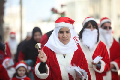 "بابا نويل" يرسم البسمة على وجوه الأطفال والمواطنين برام الله .. صور