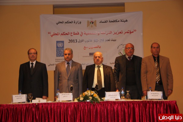 جاء ذلك خلال كلمتة في إفتتاح أعمال مؤتمر "تعزيز النزاهة والشفافية في قطاع الحكم المحلي" الذي نظم اليوم في بيت لحم بتعاون مشترك بين هيئة مكافحة الفساد، ووزارة الحكم المحلي، والاتحاد الفلسطيني للهيئات المحلية، وصندوق تطوير وإقراض البلديات، وبرنامج الأمم المتحدة الإنمائي UNDP ، ويستمر المؤتمر لمدة يومين ويهدف إلى الإطلاع على لتجارب الآخرين في إطار تعزيز النزاهة والمساءلة والشفافية في قطاع الحكم المحلي، ومقارنتها بواقعنا الفلسطيني لإستخلاص العبر والدروس.