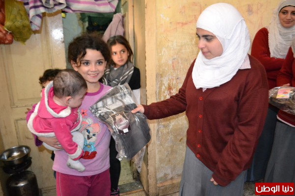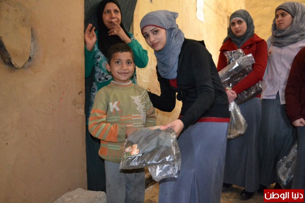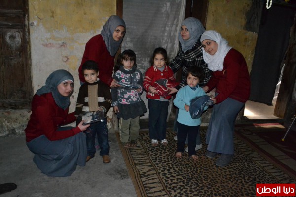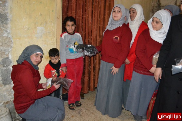 احساساً منهن بالحالة الانسانية التي يعاني منها النازحون السوريون الوافدين إلى لبنان جراء الأزمة المندلعة منذ ثلاث سنوات،الذين يسكنون مع عائلاتهمفي البرد القارص والشتاء المنهمر، قام طالبات مركز الرحمة لخدمة المجتمع بحملة تبرعات للعائلات السورية حيث قمن بجمع ثيابجديدة للاطفال، وقد قام وفد منهن يرافقهن ثلة من المعلمات اضافة الى وفد من الرعاية بتوزيع هذه الثياب على بعض العائلات النازحة.
