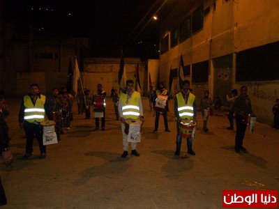 بلاطة جابت شوارع مخيم بلاطة رافعين الشعارات الوطنية والتضامنية مع الاسرى داخل السجون الاسرائيلية حيث توقفت امام مقبرة الشهداء بدقيقة صمت وقراءة الفاتحة على الشهداء الفلسطينين وبعدها سارت بشوارع المخيم وسط حشد من الاطفال والمواطنين