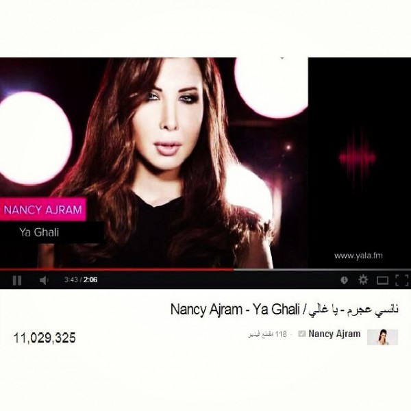 عبرت الفنانة اللبنانية نانسي عجرم عن سعادتها بوصول عدد مشاهدين غنيتها " ياغالي " عبر موقع يوتيوب إلى أكثر من 11 مليون .