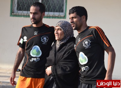 بالصور .. والدة أحد اللاعبين فى غزة تفاجئه وتحضر للملعب لمشاهدته