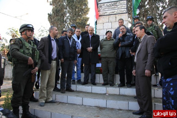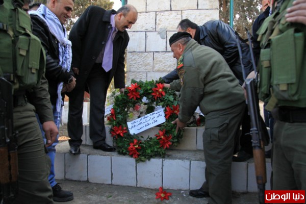 وقائد منطقة جنين العميد أركان حرب فتحي التايه برفع العلم الفلسطيني والعلم العراقي، ووضعوا أكاليل من الزهور باسم سيادة رئيس دولة فلسطين السيد محمود عباس"أبو مازن" و قائد قوات الأمن الوطني الفلسطيني اللواء نضال أبو دخان وسفير الجمهورية العراقية في المملكة الأردنية الهاشمية د.هادي عباس على أضرحة الشهداء تكريماً لهم على العمل البطولي الذي قدموه فداءً لأرضنا وشعبنا؛ وبمناسبة مرور ثلاثة وتسعون عاماً على تأسيس الجيش العراقي.