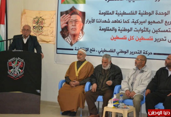 كما اكد على وقوف حركة فتح الانتفاضة في الخندق المقاوم المتمسك بالثوابت الوطنية التي انطلقت على اساسها ثورتنا الفلسطينية المعاصرة و سنبقى نعمل و ننتصر لكل التيار المقاوم على مستوى الامة من اجل تحرير فلسطين كل فلسطين .
