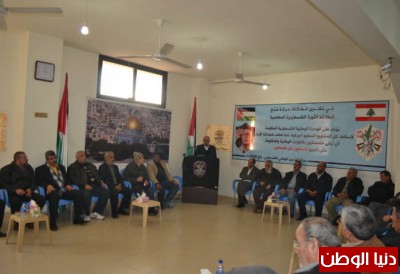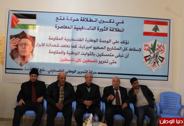 بمناسبة الذكرى التاسعة و الاربعين للانطلاقة و يوم الشهيد الفلسطيني حركة التحرير الوطني الفلسطيني – فتح الانتفاضة (منطقة صور) اقيم في مخيم الرشيدية قاعة دير القاسي حفل استقبال سياسي و شعبي بمشاركة القوى و الفصائل الفلسطينية و اللبنانية والمؤسسات و الفعاليات الاجتماعية و الشعبية و كان في استقبال المهنئين عضو اللجنة المركزية لحركة فتح الانتفاضة وامين سر اقليم لبنان الاستاذ حسن زيدان بمشاركة قادة و كوادر الحركة في منطقة صور . وتخلل الحفل كلمة لامين سر اقليم لبنان لحركة فتح الانتفاضة الاستاذ حسن زيدان اهم ما جاء بها: