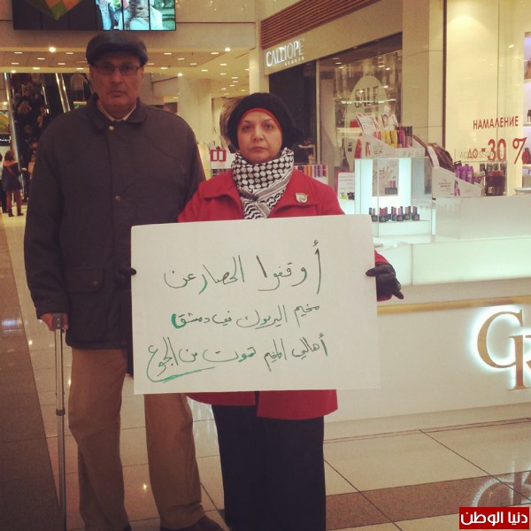 ففي الخامس من يناير 2014 قررت فاطمة أن تتظاهر بمفردهاو كتبت باللغتين البلغارية والعربية " أوقفوا الحصار عن مخيم اليرموك في دمشق - الأهالي تموت من الجوع"