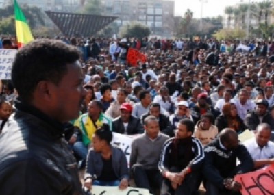 احتجاجا على السياسة التي تتبعها اتجاههم..آلاف المهاجرين الافارقة يتظاهرون أمام سفارات في تل أبيب