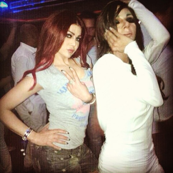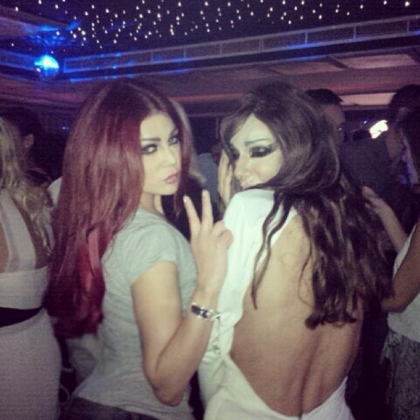 التقت الفنانة اللبنانية هيفاء وهبي خلال توجهها إلى دبي للمشاركة في حفل افتتاح " روتانا كافيه" بمقلد الفنانين باسم فغالي .