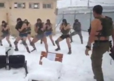 نشر موقع "واللا" العبري مساء اليوم الثلاثاء تقريرا يوضح فيه تدريبات وحدة نخبة بالجيش الاسرائيلي خلال تساقط الثلوج ووسط درجة حرارة متدنية جدا وذلك خلال العاصفة الثلجية التي ضرب اسرائيل الشهر الماضي. وقال احد جنود النخبة في التقرير ان التدريب شمل ارتداء سترة واقية وملابس داخلية فقط ، وكانت احدى التدريبات هي الزحف وسط الثلوج المتراكمة لقياس درجة اللياقة البدنية في الوقت الذي تتساقط به الثلوج الغزيرة حيث كان التدريب في شمال البلاد.