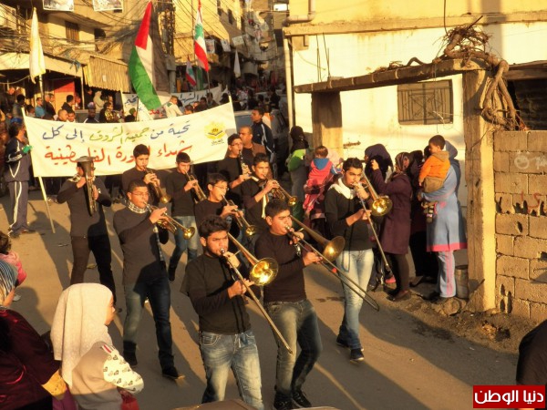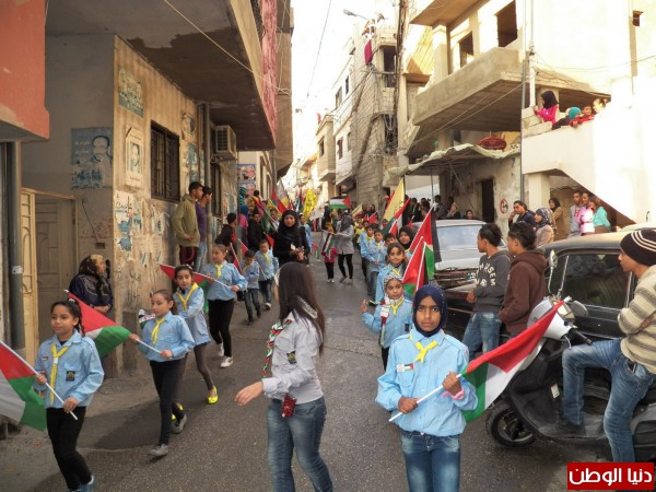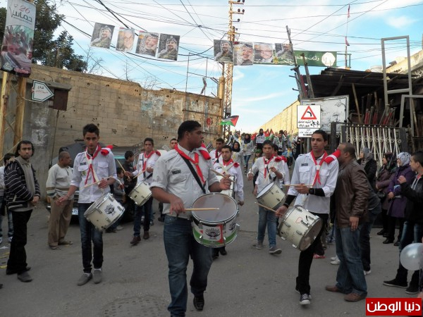 وجابت المسيرة شوارع المخيم على وقع الموسيقى الكشفية التي سارت في مقدمة المسيرة وخلفها طوابير الاشبال والزهرات والكشافة الحركية، وكشافة نادي الشروق والصمود والجبهة الشعبية وجبهة التحرير. وحملت طوابير المكتب الطلابي الحركي ومكتب المرأة والجمعيات الاهلية في المخيم صور الشهداء من كافة الفصائل الفلسطنيية وصور شهداء مخيم البرج الشمالي.