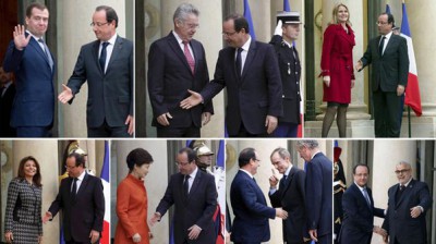 منذ بداية العام الحالي انشغل العديد من وسائل الإعلام العالمية بنشر صور للرئيس الفرنسي فرانسوا هولاند في ظروف محرجة أثناء استقباله لضيوفه في القصر الرئاسي. إذ يبدو أن سنة 2013 لم تكن موفقة بالنسبة لسيد الإيليزيه، بعد أن عمد العديد من ضيوفه من رؤساء الجمهوريات والحكومة إلى إهمال اندفاعه لاستقبالهم ومصافحتهم، منشغلين بالصحافيين والمصورين.